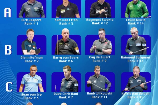 De maand november was een meer dan prima maand met maar liefst 9 overwinningen en 1 verliespartij, het enige verlies was tegen niemand minder dan legende Dick Jaspers in de halve finale van de GP van Capelle a/d IJssel. Uiteindelijk een mooie 3e plaats en tevens in de eindstand eveneens als 3e geëindigd en hierdoor ook als 3e geplaats voor de Masters 2026 (14 t/m 18 januari 2026). Hiervoor is inmiddels de loting (zie foto’s) al verricht en ben groepshoofd in poule C met Dave Christiani, Huub Wilkowski en Harrie van de Ven.